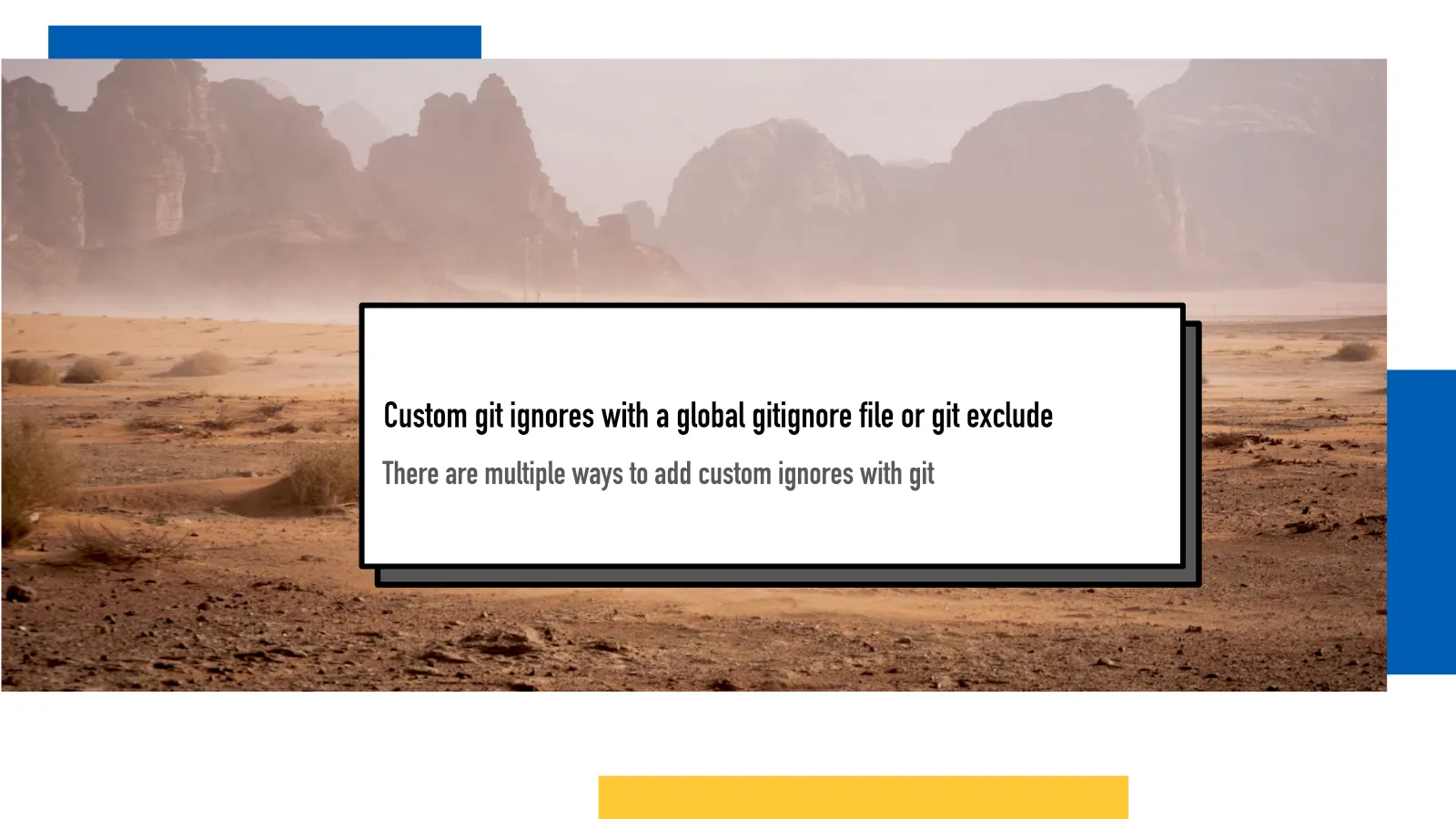 Two main options are a global ignore file and using git exclude. Marijke Luttekes has a brilliant post that inspired this one where she goes more in-depth into the differences and when to use which. You should check that out as I won’t go that deep into the matter in this post, I just want to share good starting points for learning more.