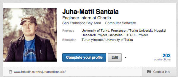 Pelkkä profiilin olemassaolo ei kuitenkaan johda hirveän pitkälle ja nyt on hyvä aika laittaa oma profiili kuntoon. Työelämässä kilpailu on kovaa ja itse ainakin tahdon ottaa kaikki keinot käyttöön omien mahdollisuuksieni parantamisessa. Usein asiasta mainitessani kuulen, että ihmisillä ei ole tarpeeksi työkokemusta tai työelämän kautta saatuja verkostoja, että olisi mitään järkeä luoda profiili. Myönnettäköön, että sanoin ja ajattelin itse aikoinaan samaa. Hyvin tehty profiili kuitenkin on erittäin tehokas lisäkeino työnhaussa, joten laadulla on mahdollisuus paikata määrää.
